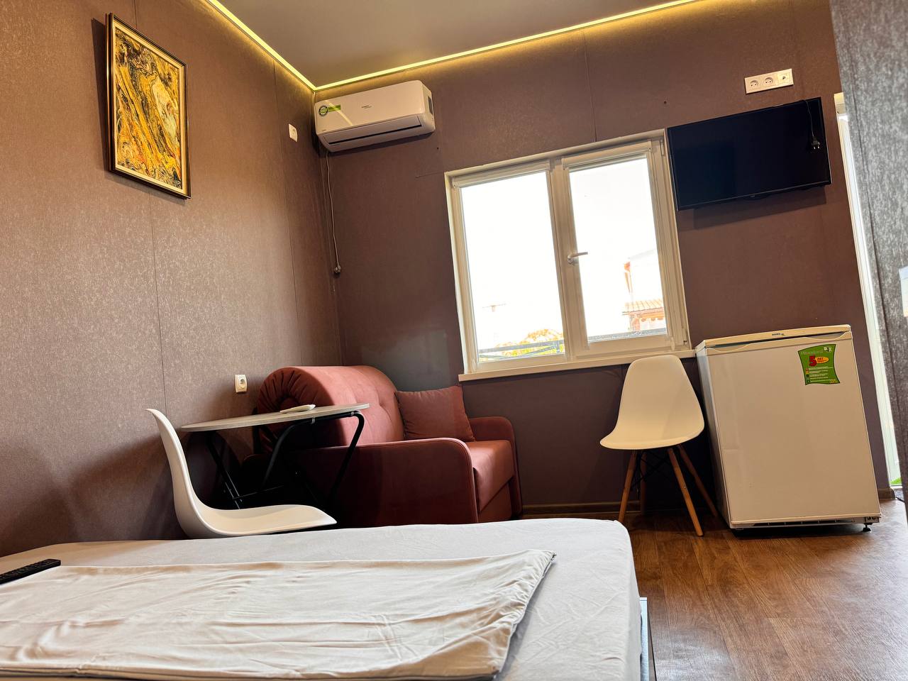 - Уборка: производится по запросу гостя, входит в стоимость проживания